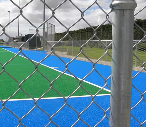 हेबेई 3 मिमी गैल्वेनाइज्ड आयरन वायर डायमंड चेन लिंक जाल बाड़ 6 फीट फुटबॉल क्षेत्र 50x50 मिमी 60x60 मिमी जाल आकार बाड़ हार्डवेयर